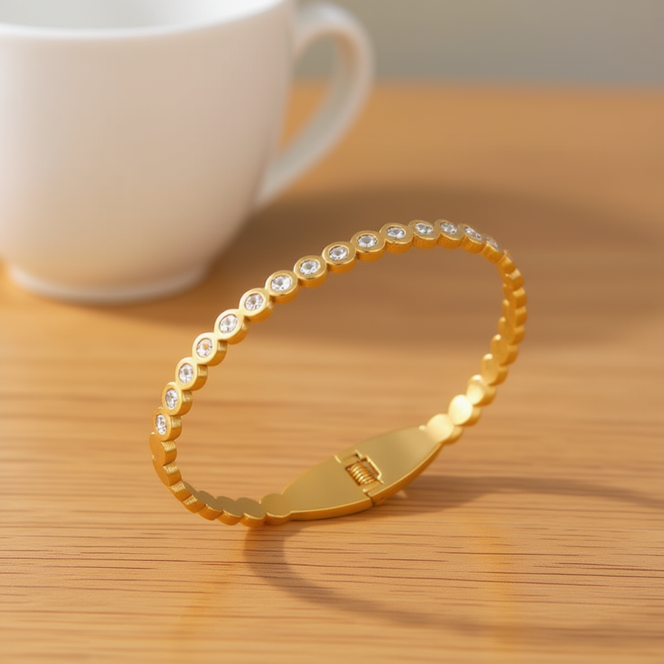 Bracciale Rotondo con Diamanti Incastonati in Acciaio Inossidabile 47710-7