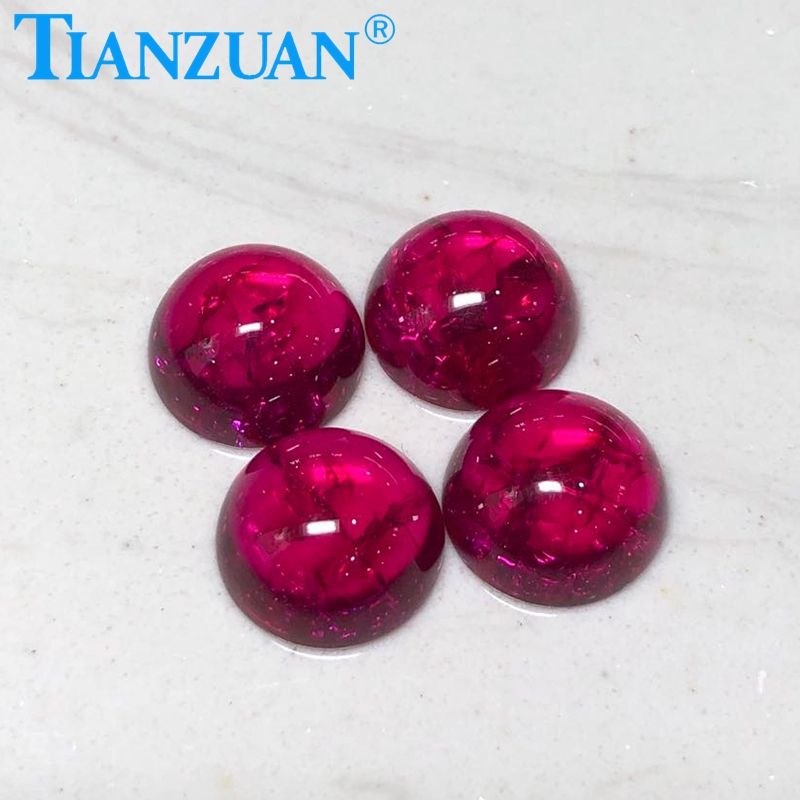 Rubino di colore rosso corindone cabochon con retro piatto rotondo con piccole crepe e inclusioni simili alla pietra preziosa allentata naturale