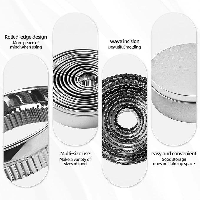 Tagliabiscotti Rotondi Scanalati in Acciaio Inossidabile, Anelli Metallici per Pasticceria, Stampi per Tagliare Impasto e Biscotti