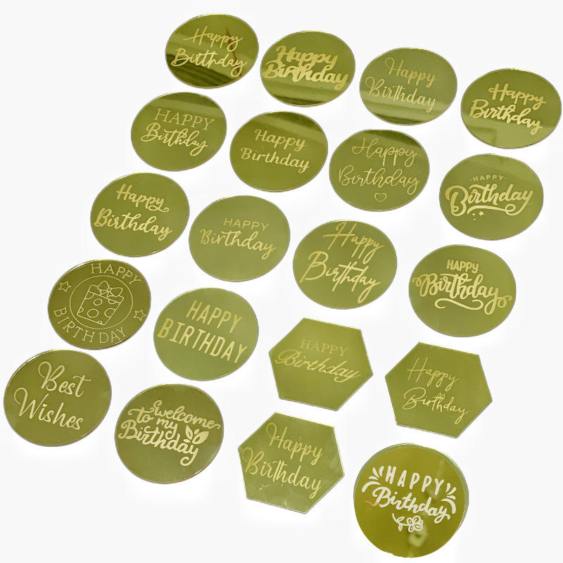 Decorazioni Rotonde in Acrilico Dorato per Torte di Compleanno