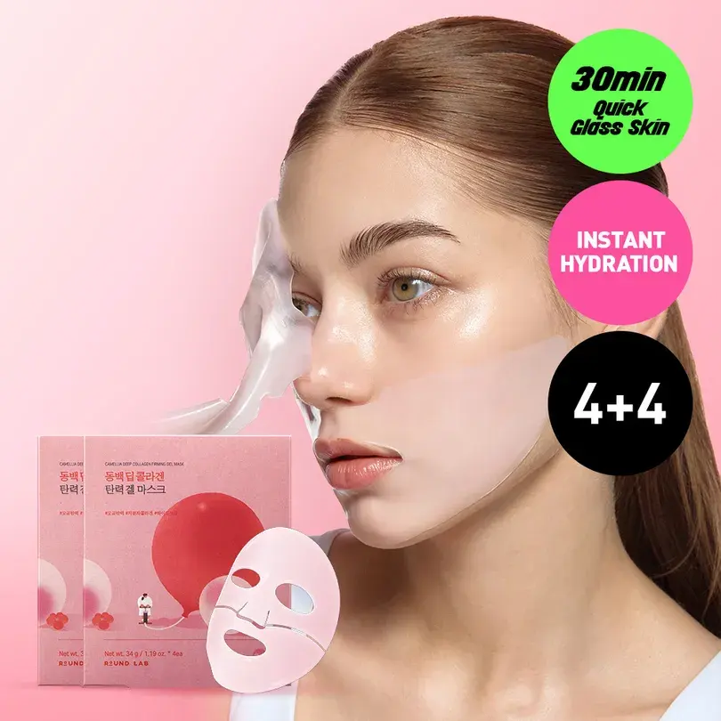 Round LAB Camellia Deep Collagen Firming Gel Mask Set 4ea+4ea Facial Masks