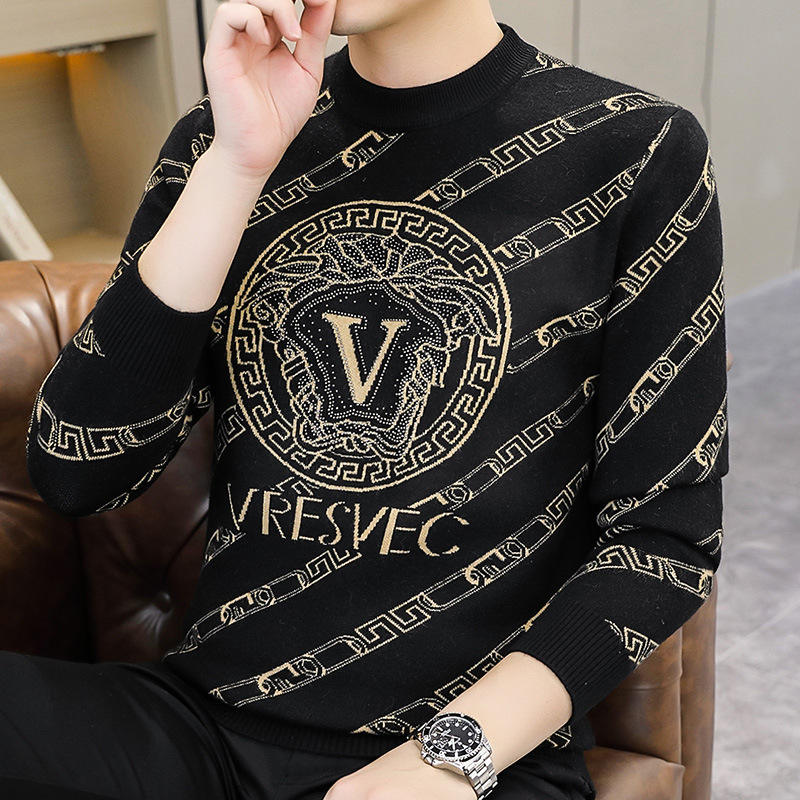 Maglione Invernale da Uomo a Maniche Lunghe a Maglia Slim Fit con Girocollo all'Ingrosso