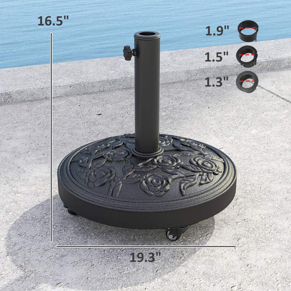 Base per Ombrellone da Patio Rotonda con Ruote in Resina da 46 Libbre, Supporto per Esterni per Pali di Ombrelloni da 1.3'/1.5'/1.9'