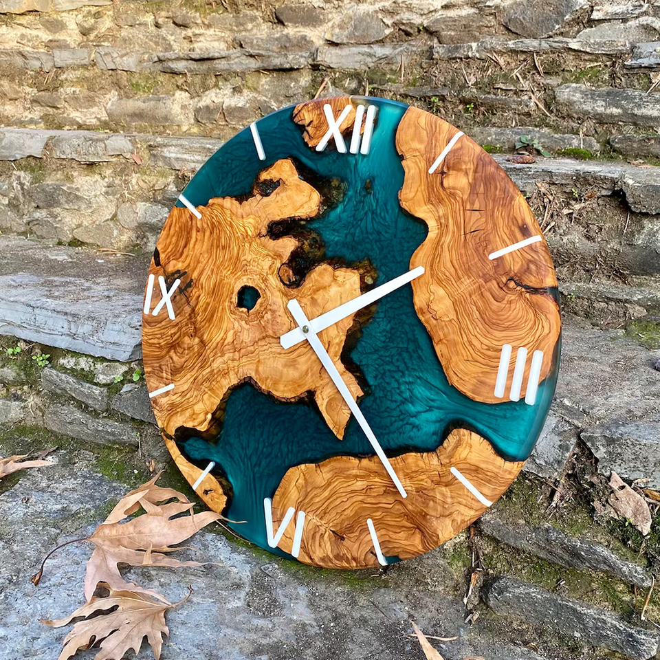 Round Resin Wall Clock Epoxy Wood Industrial Blue Color Wall Clock Home Decor Resin Wood Clock