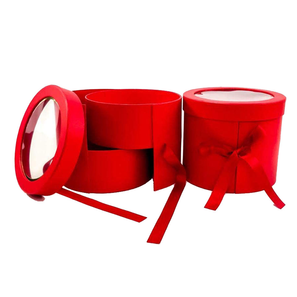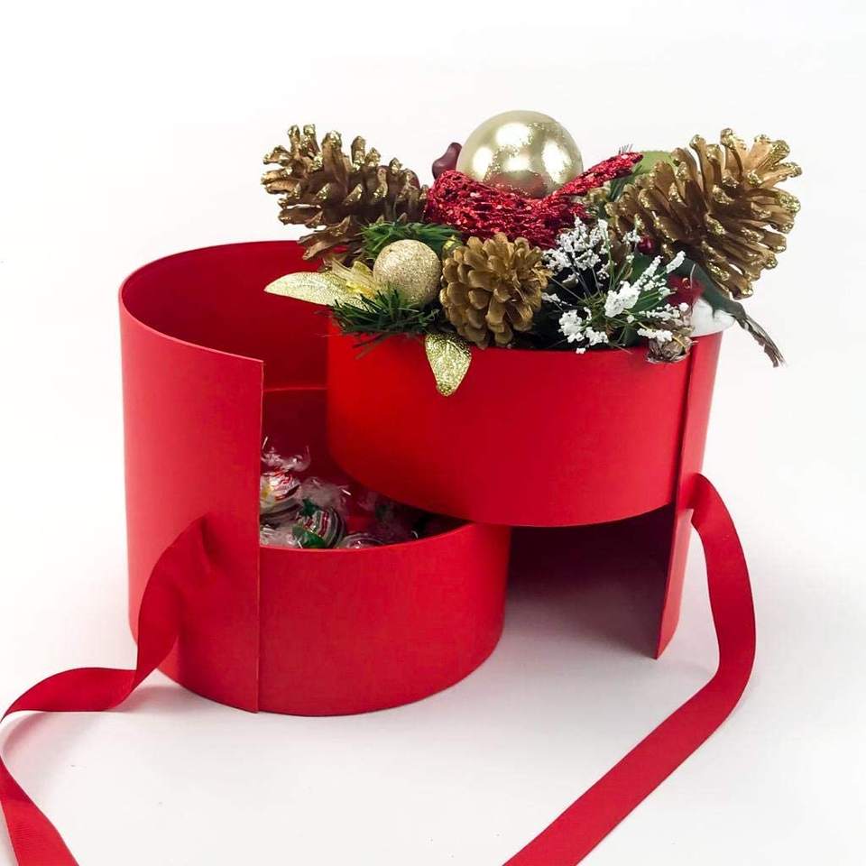 Scatola rotante a doppio strato di forma rotonda scatola romantica per bomboniere con fiori di rose conservati con coperchio trasparente
