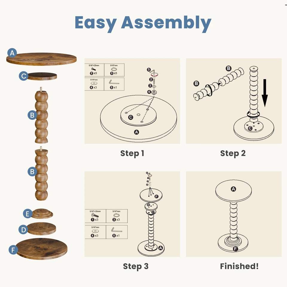 Tavolino Rotondo con Gambe in Legno Massello Multifunzionale per Bevande, Soggiorno, Camera da Letto - Comodino