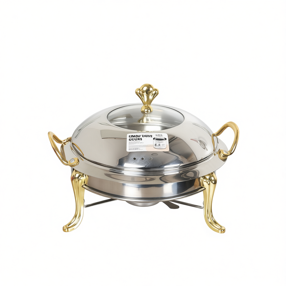 Scaldavivande Rotondo in Acciaio Inox con Finiture Dorate, Durevole, per Catering e Buffet, Riscaldamento Elettrico, Mantenimento Calore per 8 Ore
