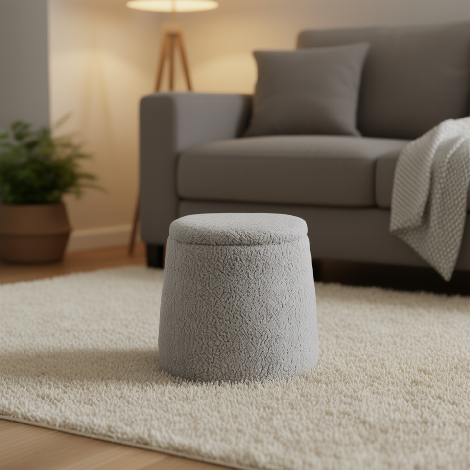 Pouf Contenitore Rotondo in Tessuto, Design Minimalista, Sgabello con Vano Nascosto, Arredamento per Soggiorno