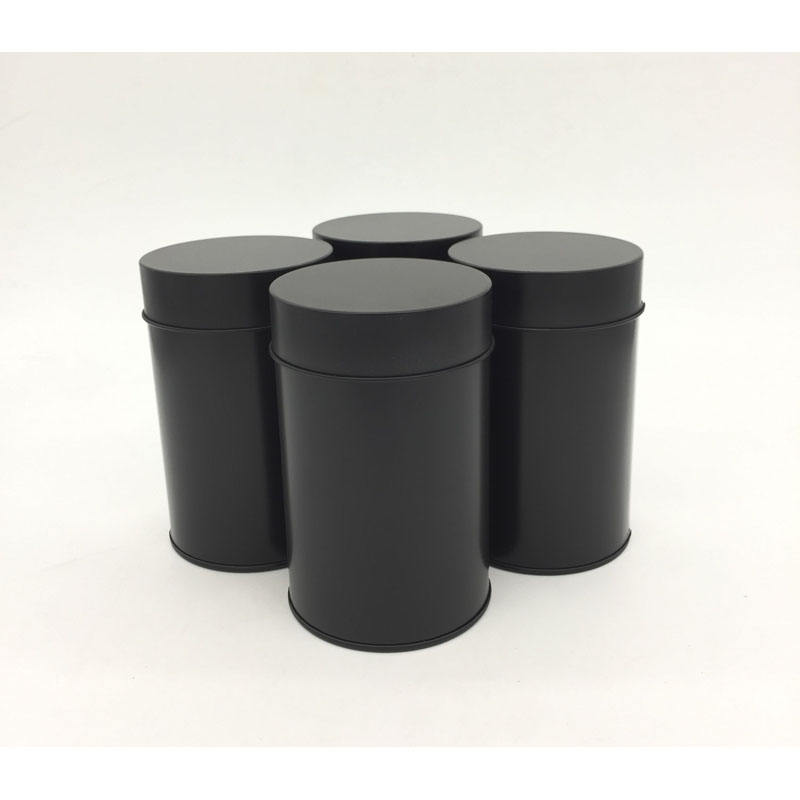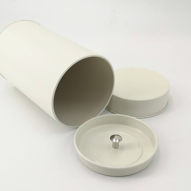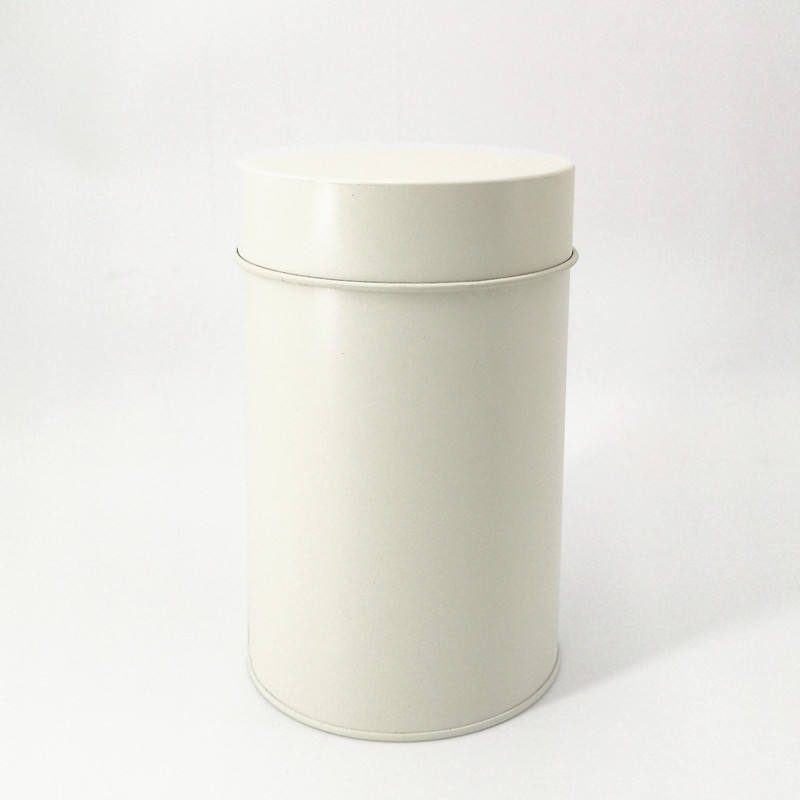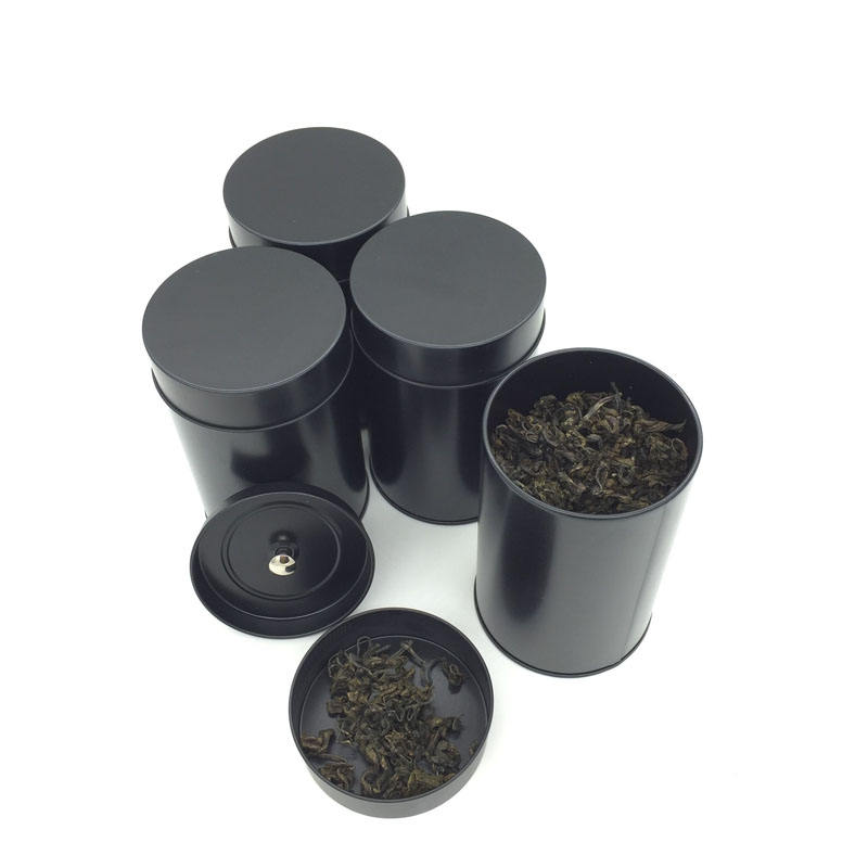 Tè rotondo scatola di latta con coperchio interno di colore bianco e nero