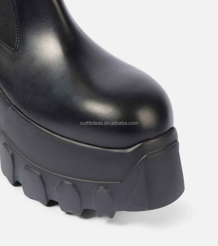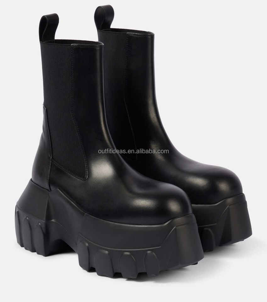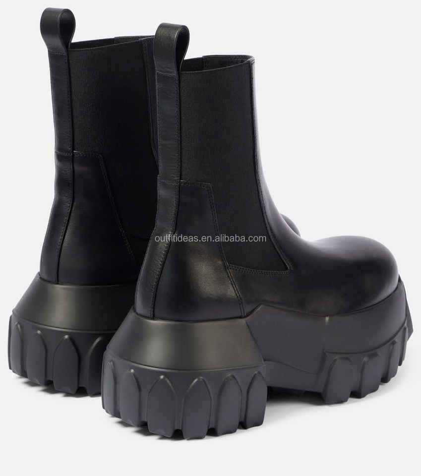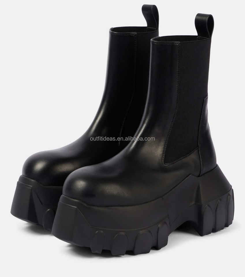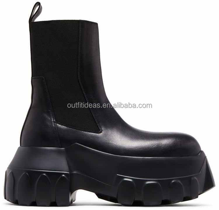 Scarpe da uomo con zeppa da uomo in pelle di vitello a punta tonda scarpe eleganti con pannelli elasticizzati Mega trattore pelle stivali Chelsea