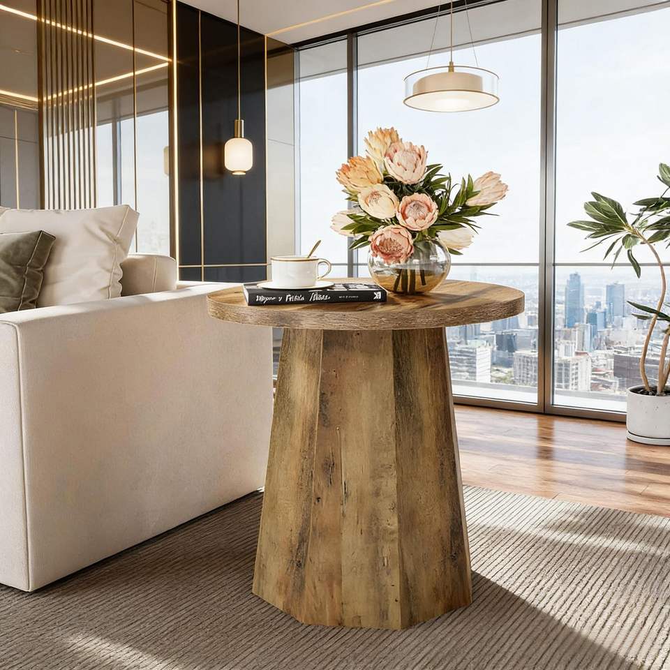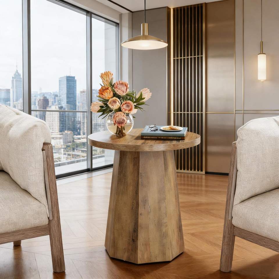 Tavolino Rotondo in Legno con Base Ottagonale, Utilizzabile come Comodino o Tavolino d'Appoggio