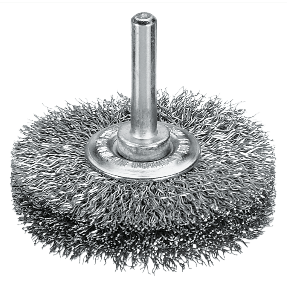 Spazzole rotonde SRB con gambo di 6 x 30 mm, diametro 70 x 13 mm, filo d'acciaio STA ondulato di 0.15 mm, altezza delle setole 1