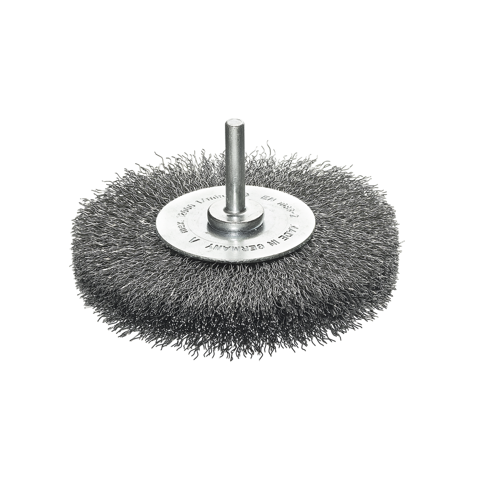 Spazzole rotonde SRB con gambo di 6 x 20 mm, diametro 100 x 14 mm, filo d'acciaio STA ondulato di 0,30 mm, altezza delle setole