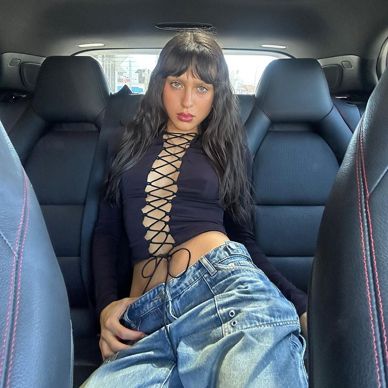 Abbigliamento Donna Moda 2026: Top Corto a Maniche Lunghe con Lacci e Dettagli Traforati