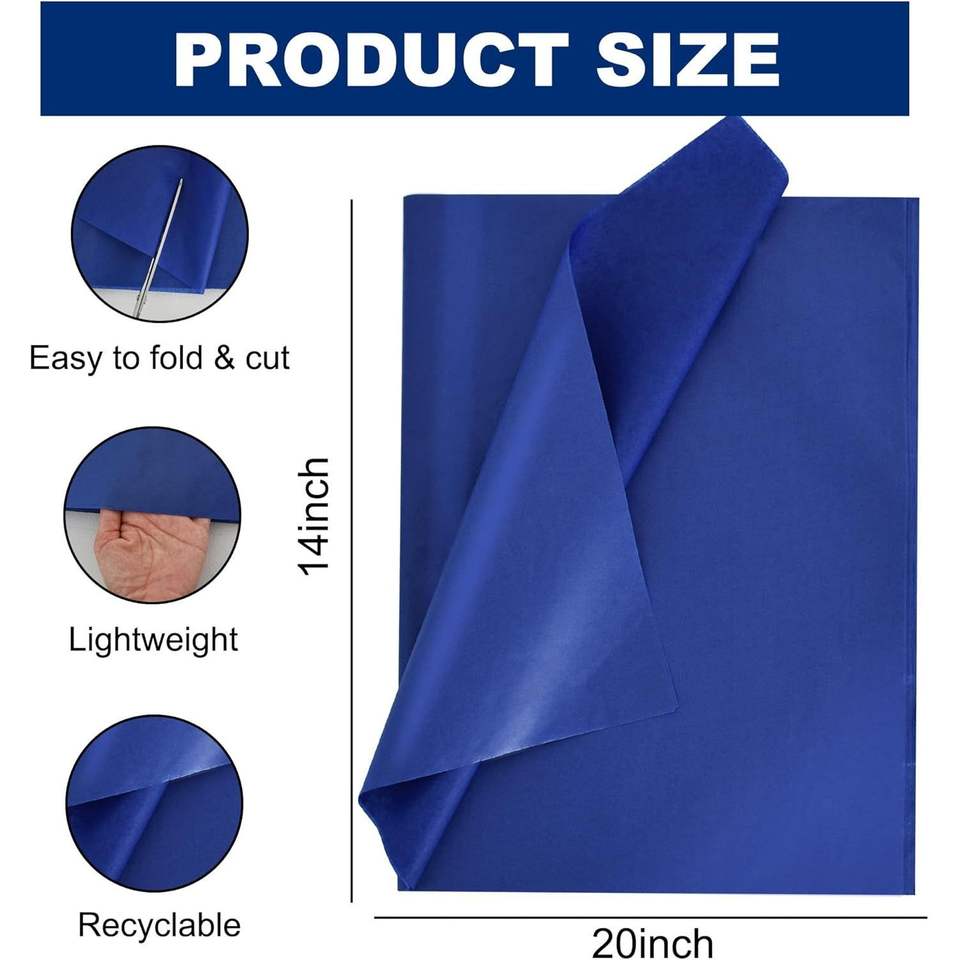 Carta Velina Blu Reale in Confezione da 100 Fogli 14 X 20 Pollici per Confezioni Regalo, Decorazioni per Feste di Compleanno, Matrimoni e Lauree