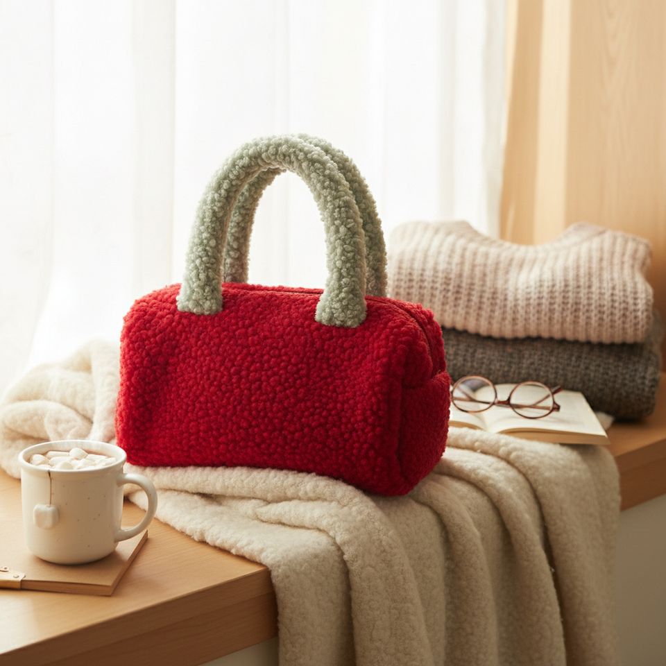 Royal Fair Custom Soft Teddy Fleece Cosmetic Pouch Multi-Purpose Travel Toiletry Bag Furry Clutch Bag Trendy Sherpa Handbag