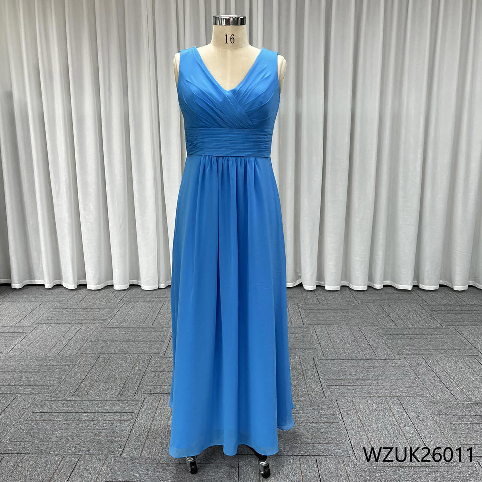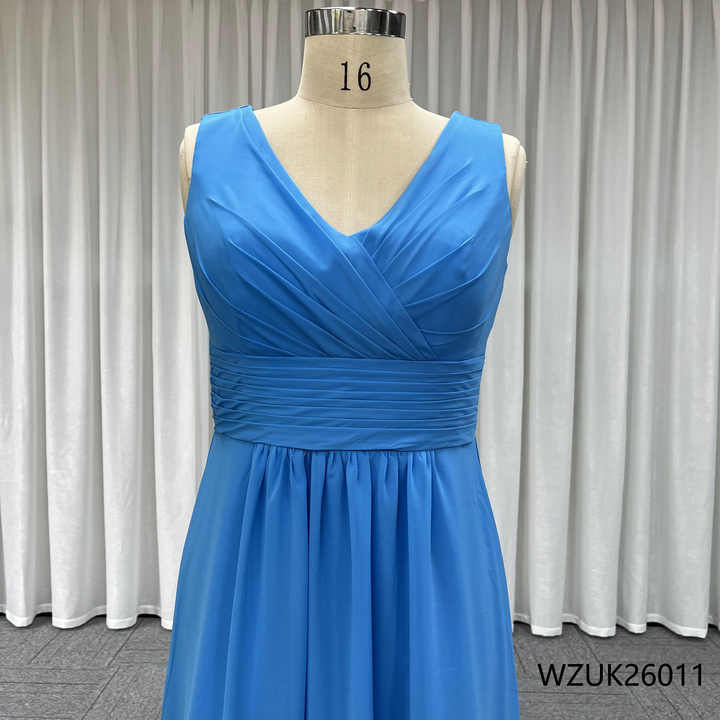 Abito da Sera Lungo con Scollo a V Elegante per Cerimonie e Feste Abbigliamento Femminile Gracioso Abiti da Sposa Blu Cielo