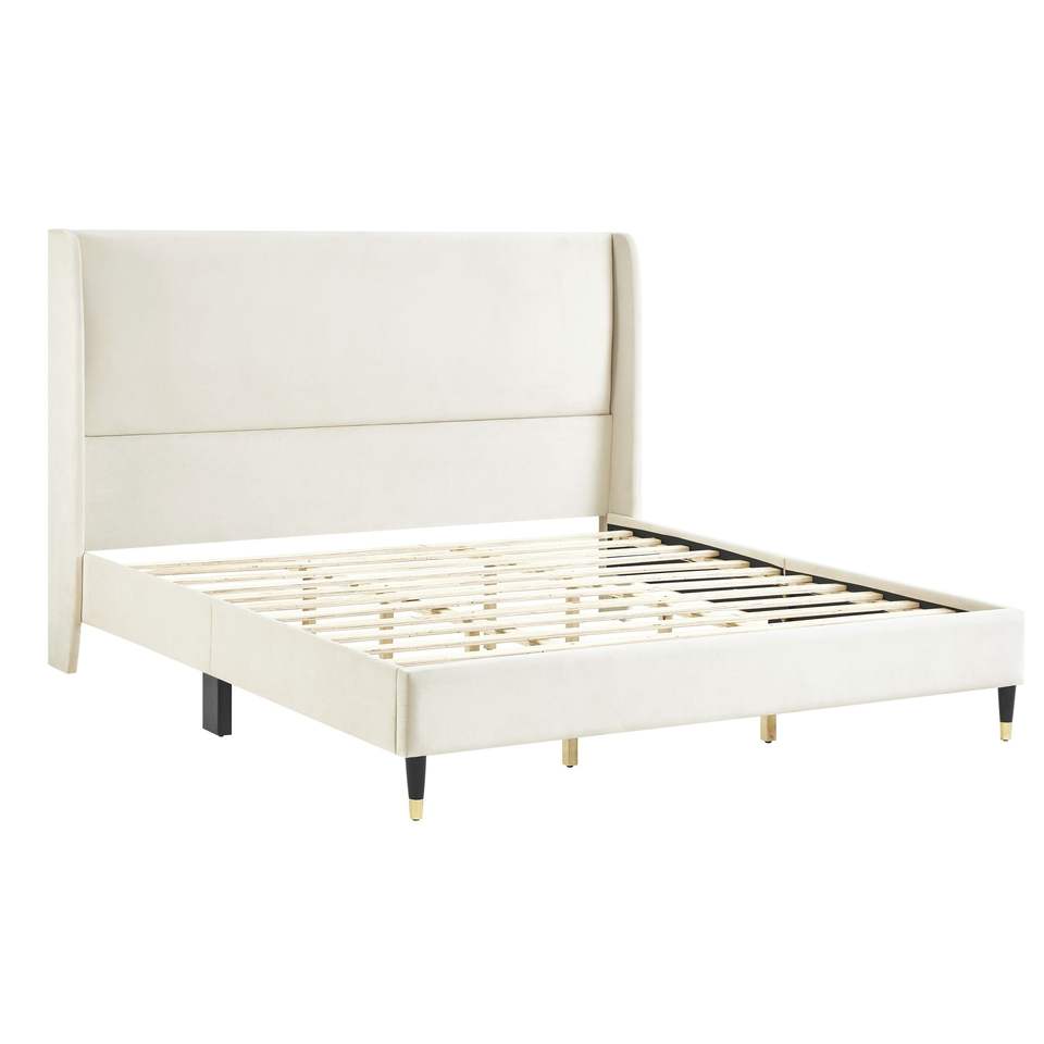 Letto con Piattaforma King-Size Rozitta in Velluto Beige, Letto Imbottito di Lusso