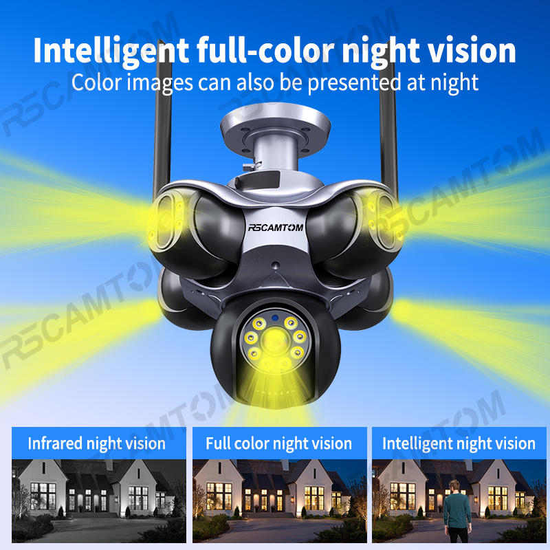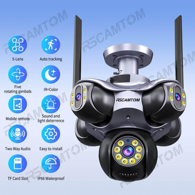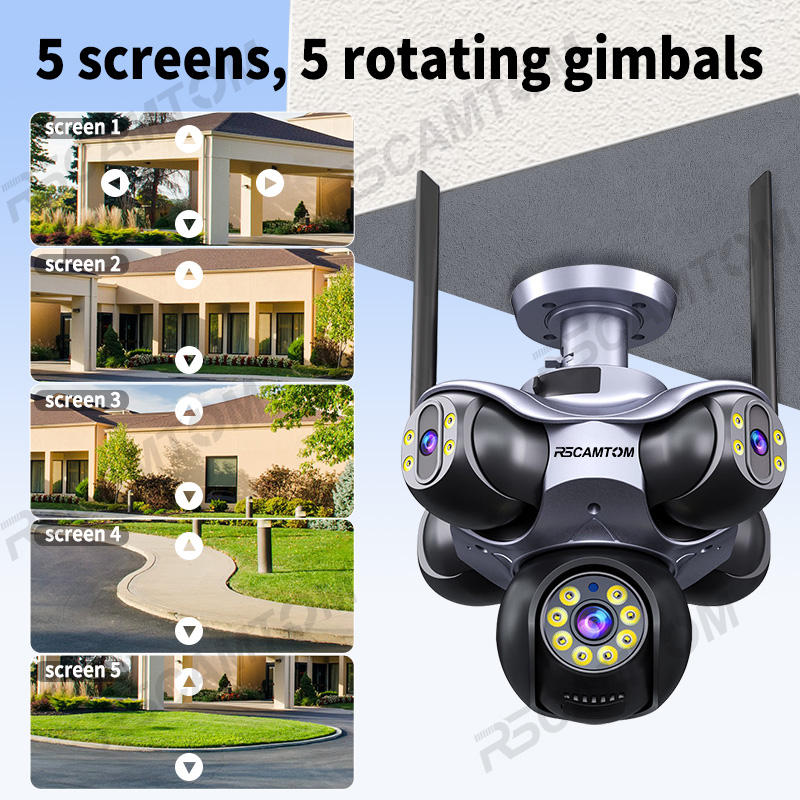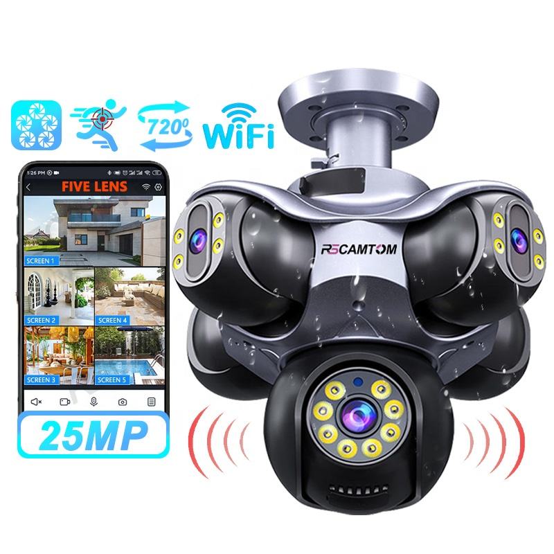 Rscamtom Telecamera PTZ 720° 5 lenti 25 MP per esterno, Wi‑Fi, tracciamento persone, allarme movimento, garanzia 1 anno
