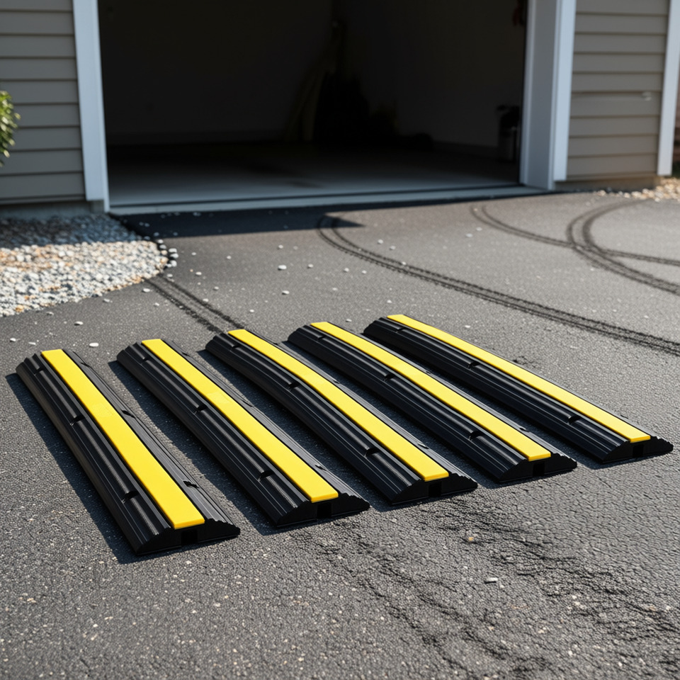 Rampe Protettive in Gomma per Cavi, Confezione da 4, 1 Canale, Capacità di Carico 22046 Libbre, Rampa Copricavo per Passo a Lenta Velocità per Vialetti