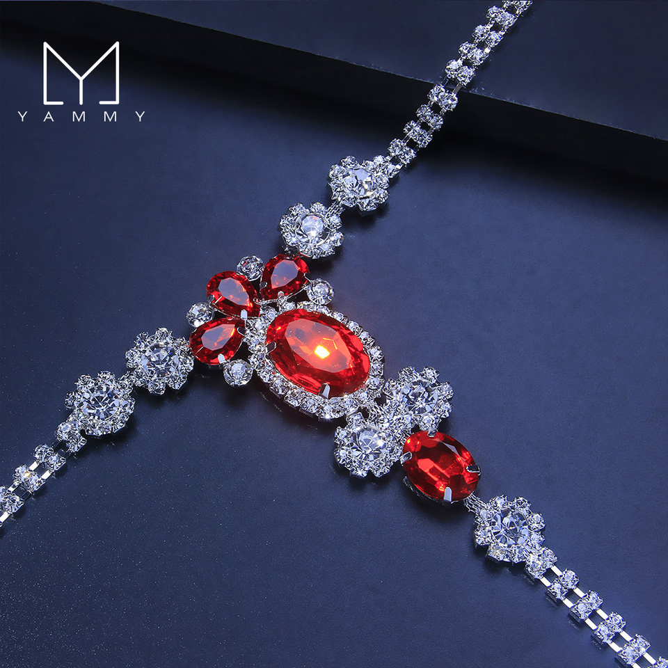 Yammy Jewelry Catena per il corpo con strass rubino in lega, oro/argento, ca. 40 g per lingerie/bikini (T-back), elegante e sexy