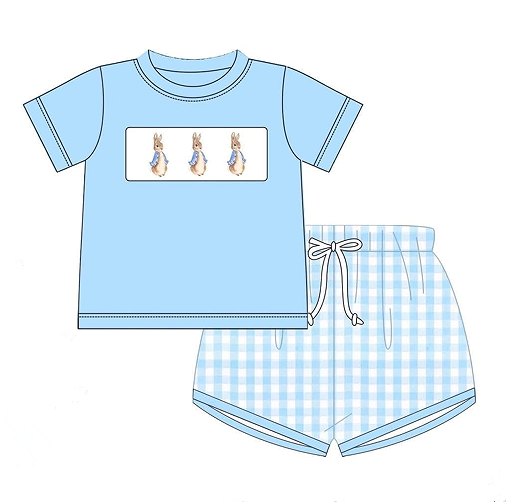 Ruffle Plaid Baby Girls Clothing Sets Easter Bunny Embroidered Summer Cotton Smock Toddler Boys' Sibling Match Infant Clothing