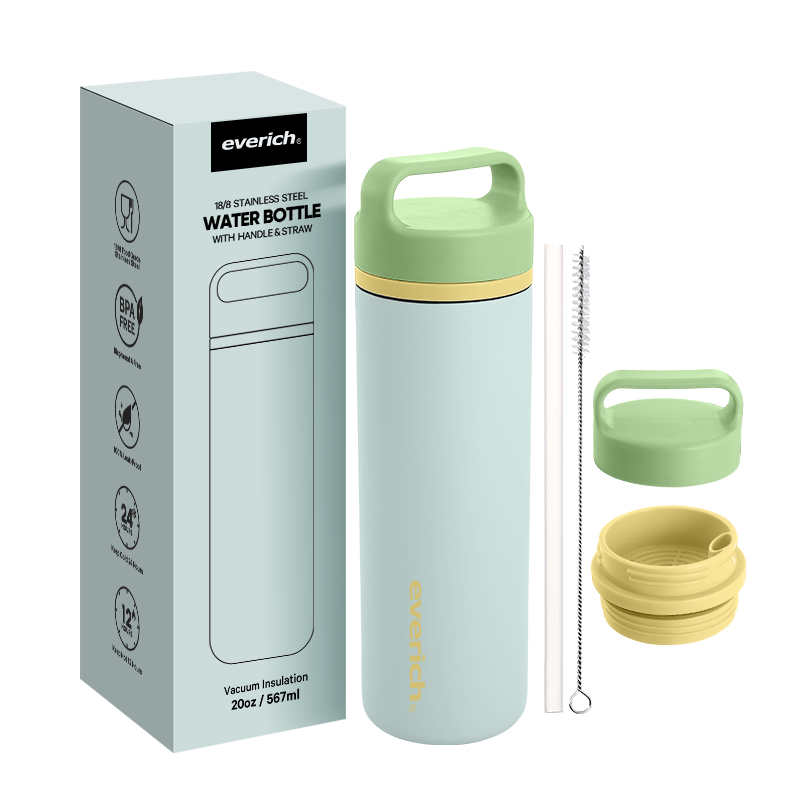 Rugged Outdoor 20oz Vacuum Insulated Thick Gauge Stainless Steel Bottle Built for Long Term Use with Handle