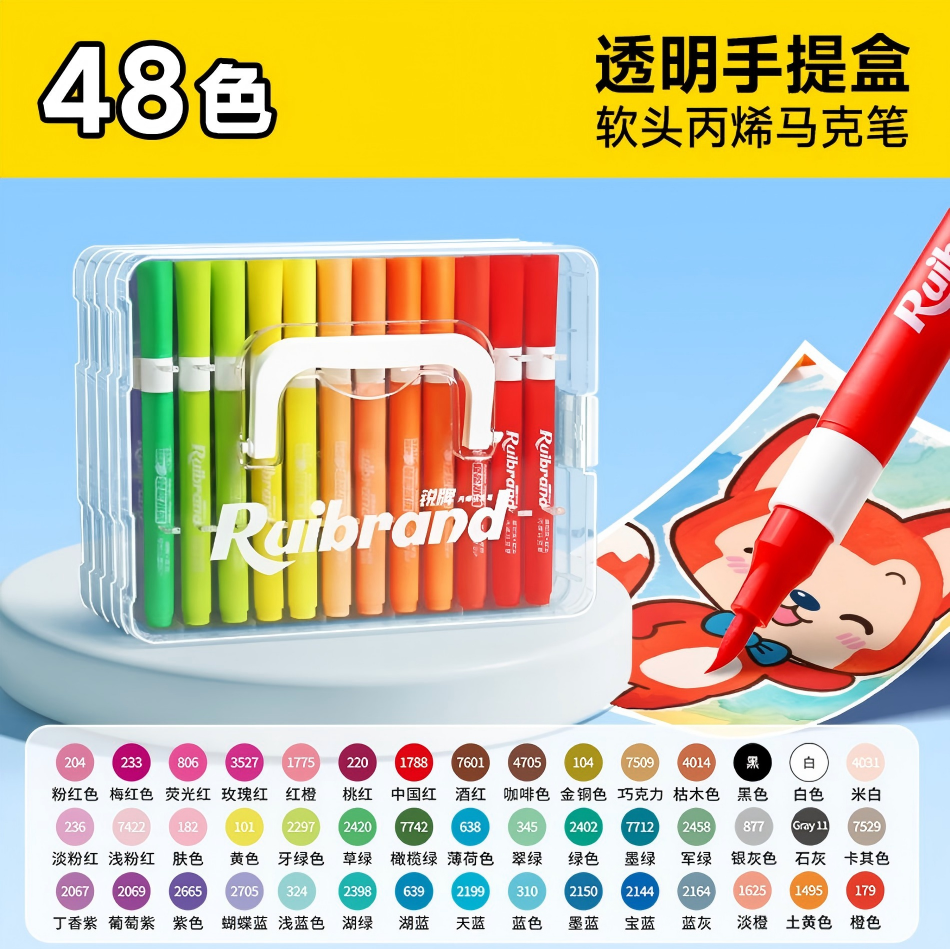 Set di 48 Pennarelli Acrilici Ruibrand per Disegno Artistico, Uso Scolastico e d'Ufficio