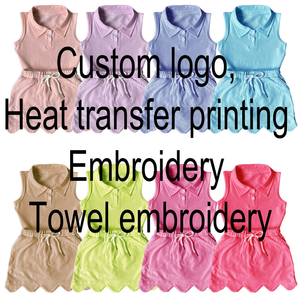 Ruidian Wholesale Knitted Cotton Sleeveless Lapel Button Design Girls Clothing Sets Teenagers Ruffled Skirt Built-in Shorts