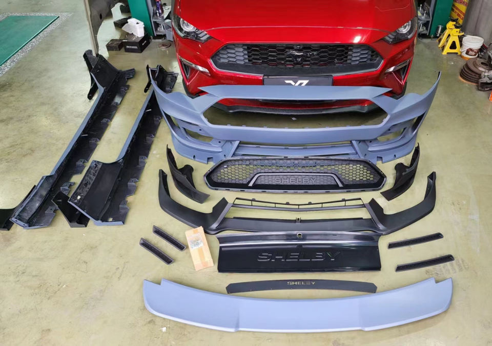 Kit Carrozzeria Stile Shelby per Ford Mustang 2018-2021, Paraurti Anteriore, Minigonne Laterali, Spoiler, Cofano - Componenti Auto PP di Alta Qualità