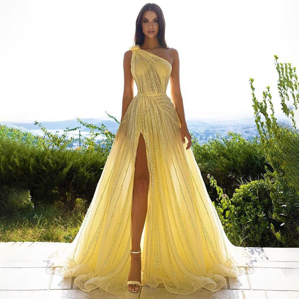 Ruolai ASA-SS508 Sexy a Line Tulle formale da donna abiti da sera da sera con paillettes con spacco lungo abito da sera