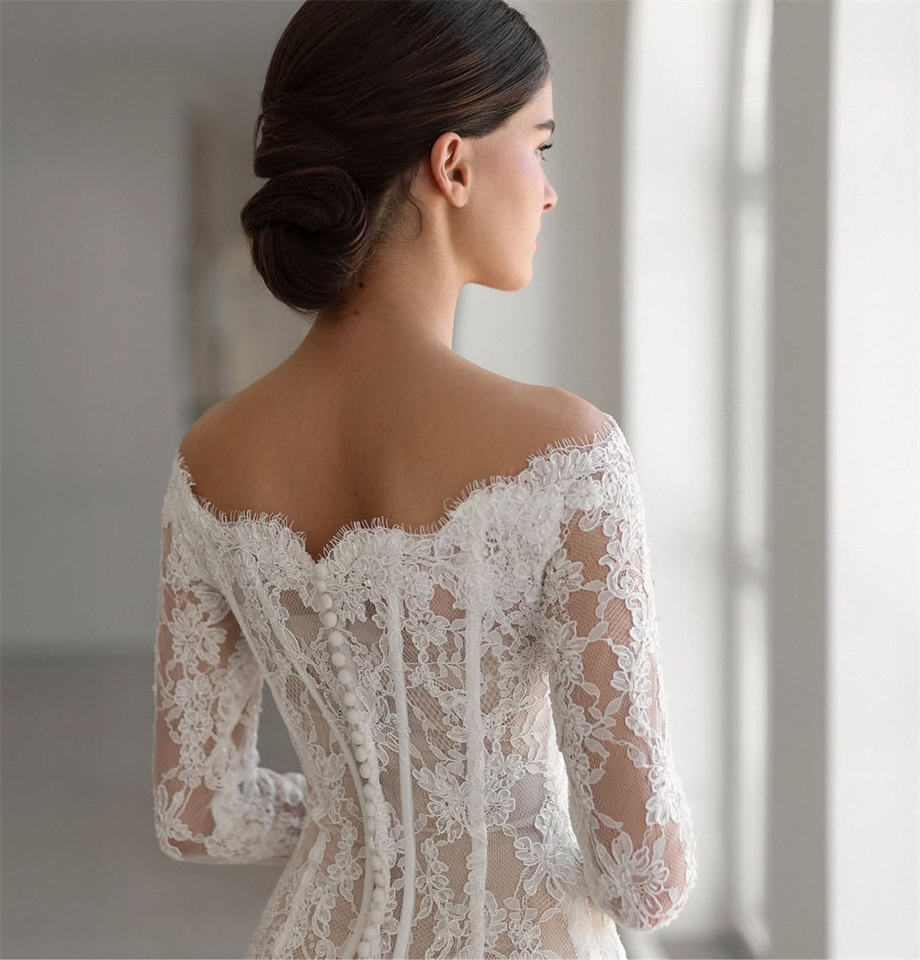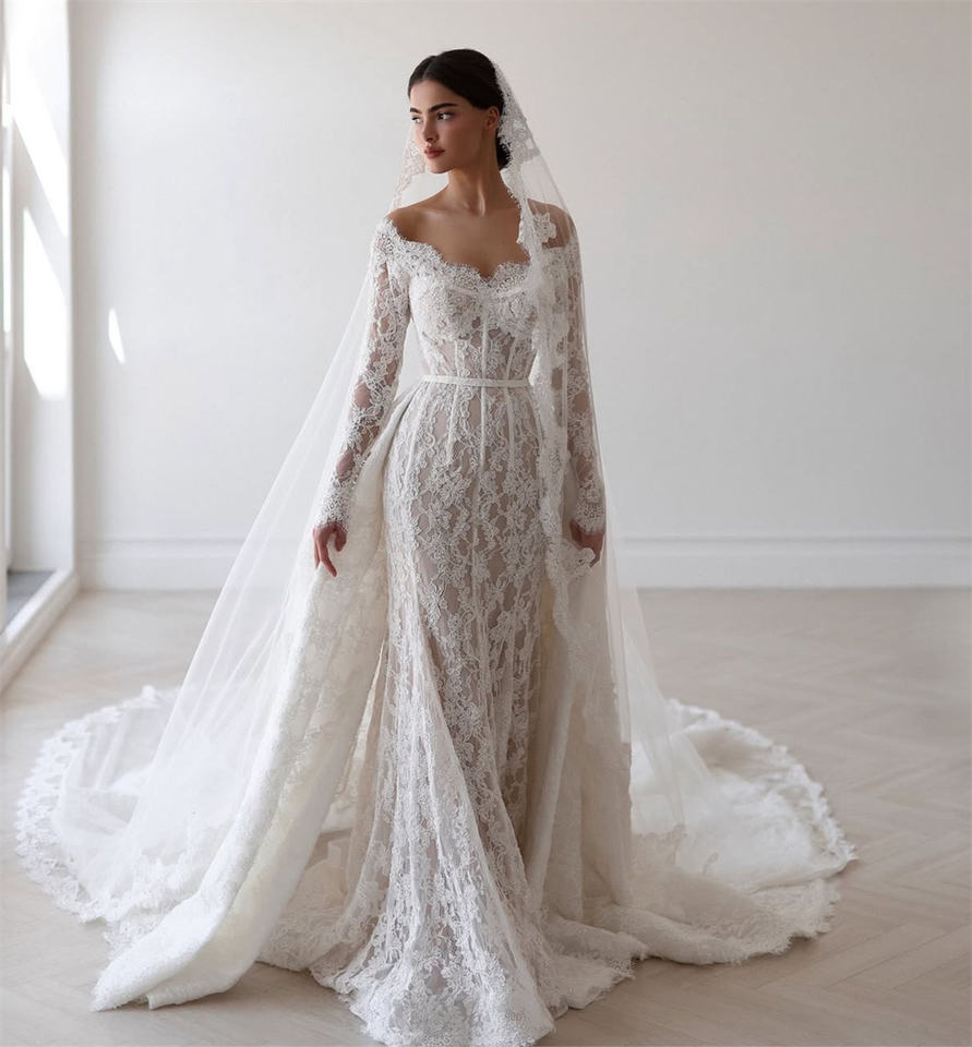 Ruolai HL556 Off Shoulder Long Sleeves 2 in 1 Detachable Trail Mermaid Bridal Gown Wedding Gowns Dress