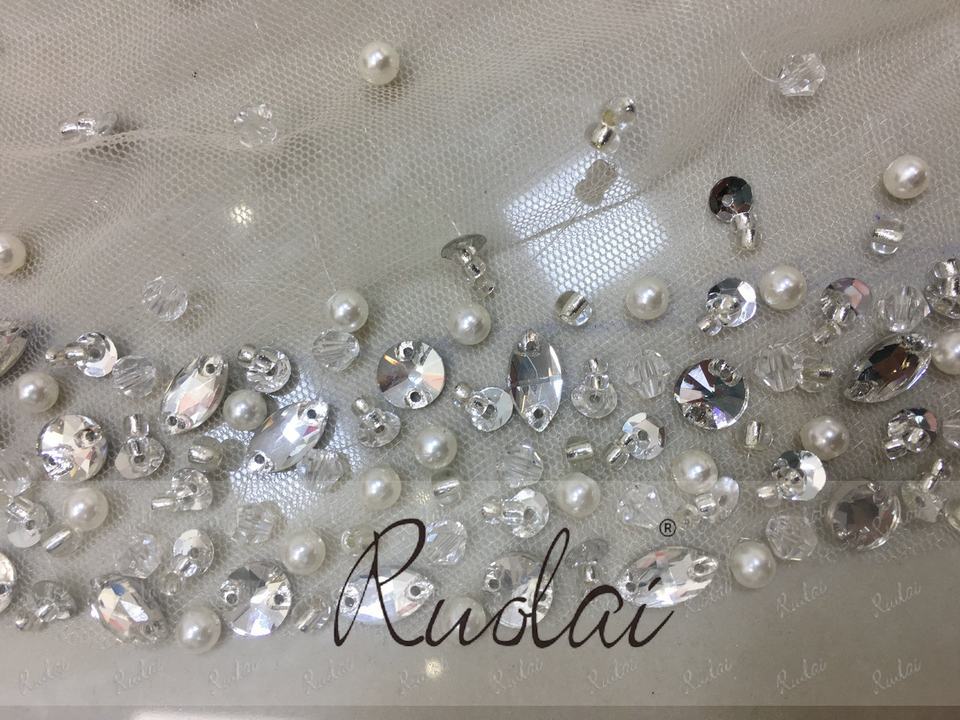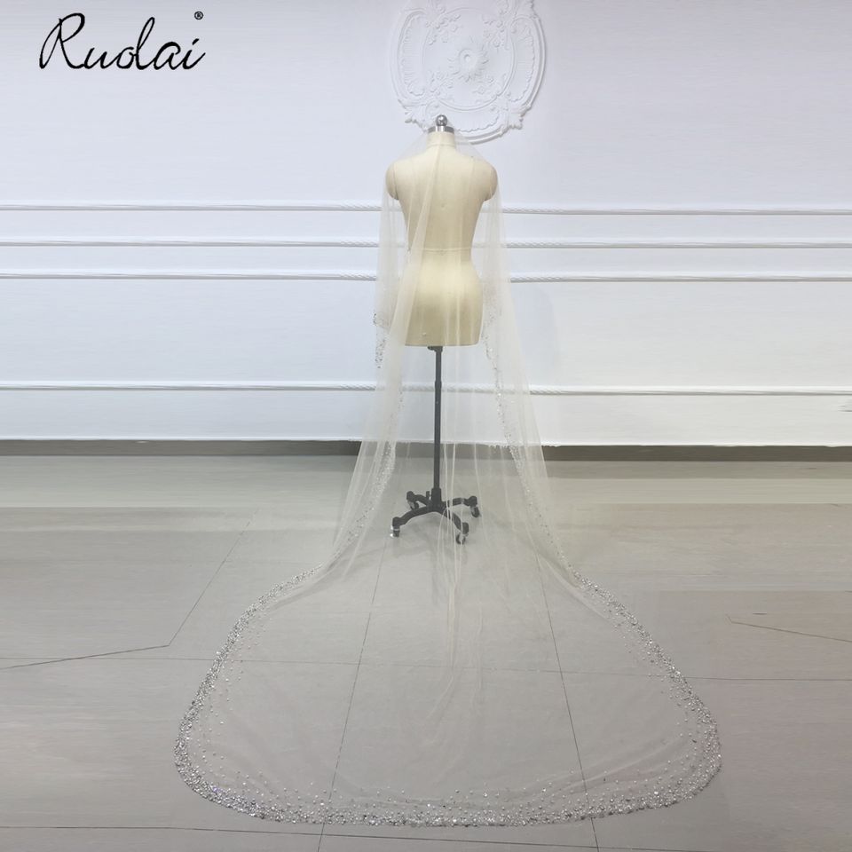 Ruolai WV01 Luxury Chapel Length Crystal Beading Pearls Veils Wedding Bridal Veils