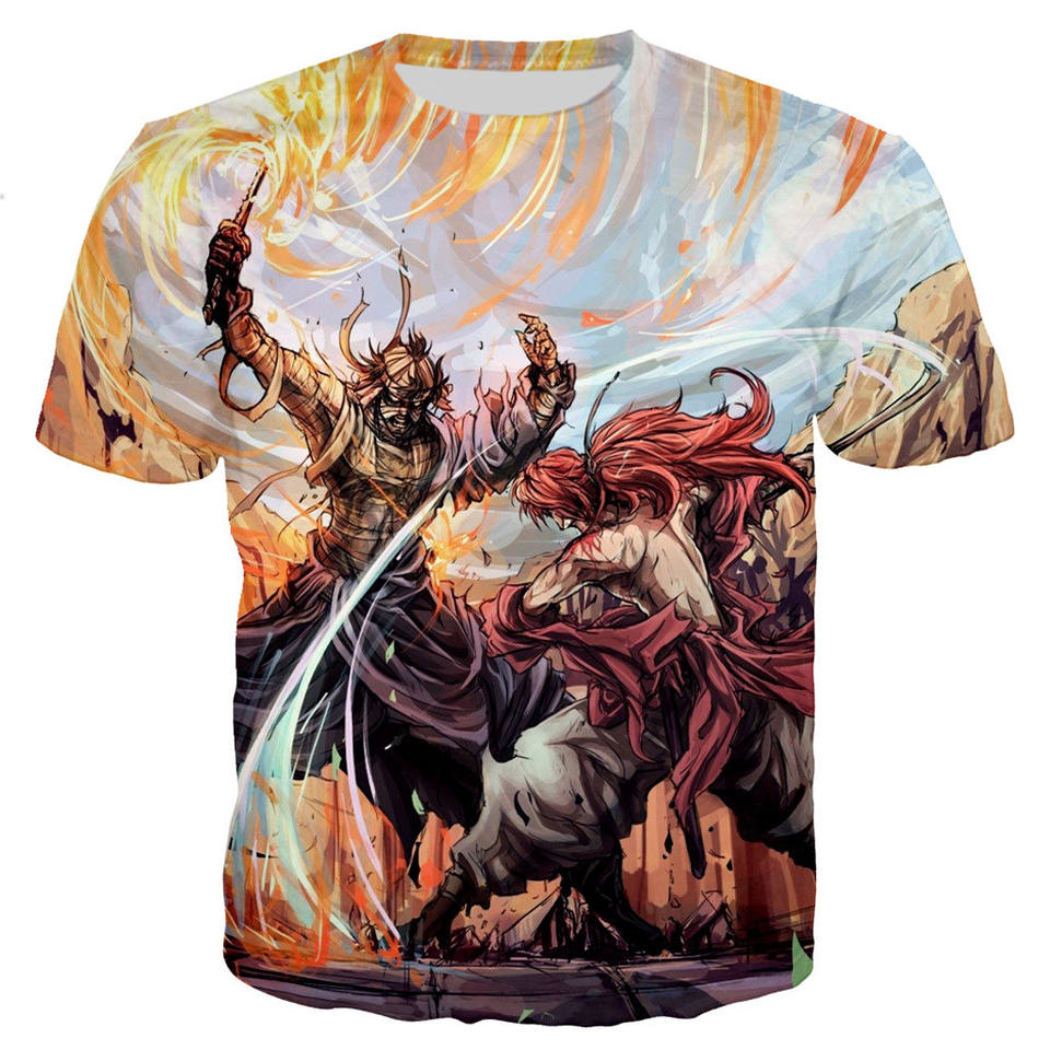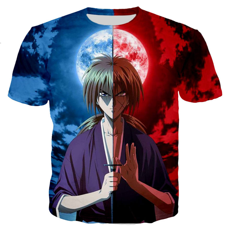 T-shirt Rurouni Kenshin con stampa 3D all-over, modello 2025, anime giapponese, maniche corte, taglie forti, grafica stampata.