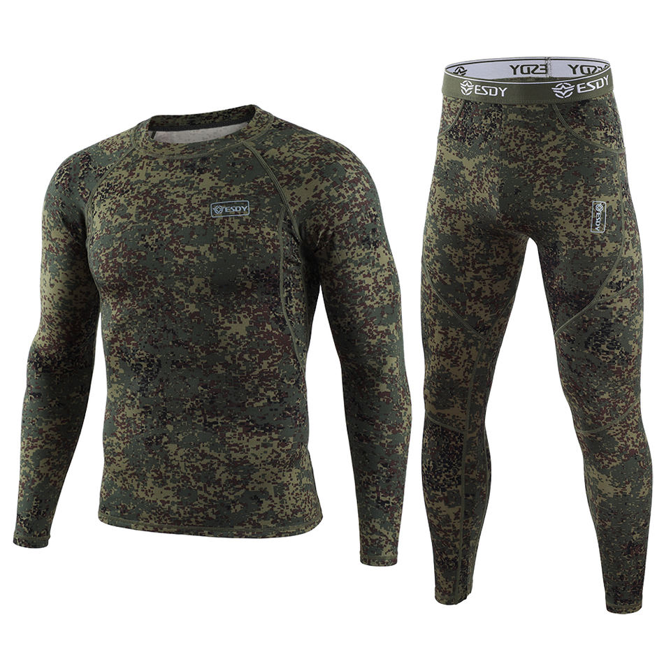 Russia camo ESDY Outdoor tattico sport termici uomo biancheria intima abiti neri