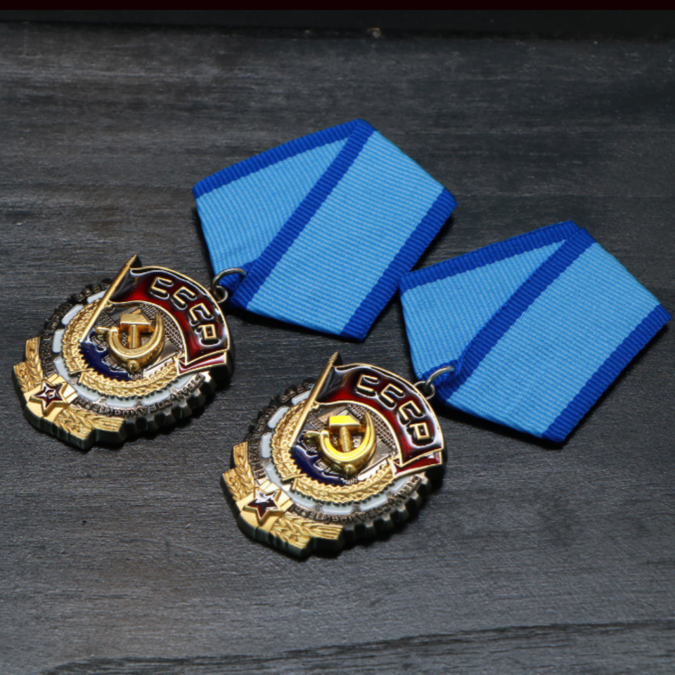Russia due emblemi di placcatura di tono e medaglia d'onore di azione con stella di colore trasparente spagnolo Vintage impegno medaglia