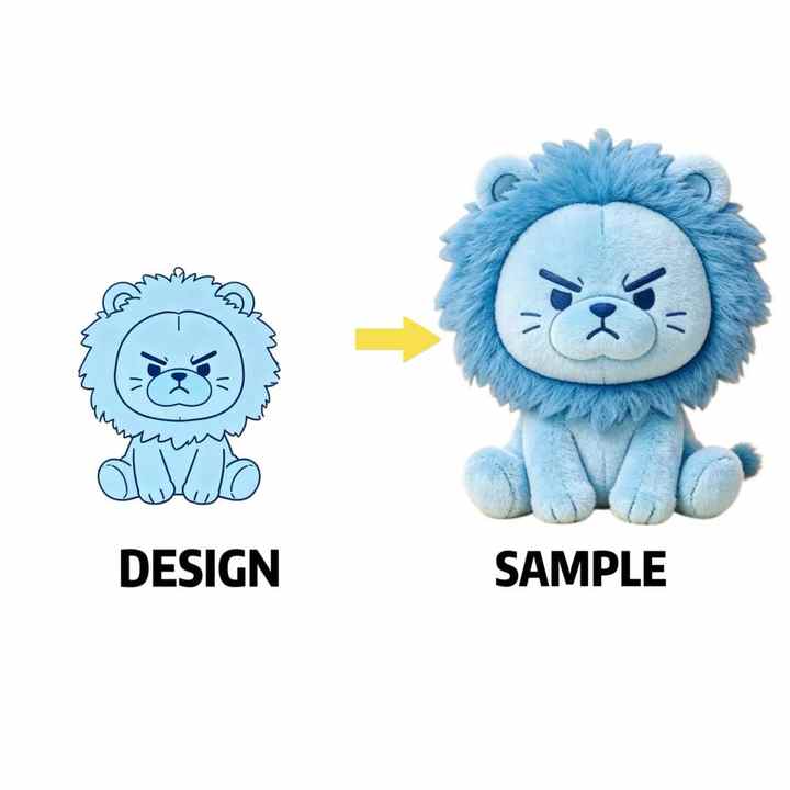 High-Quality Custom Blue Lion Plush Sample Made From Your Artwork As a Unique Stuffed Animal