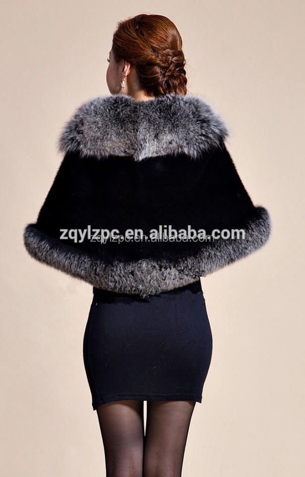 Sciarpa e Stola da Donna in Vera Pelliccia di Visone Stile Russo con Maniche a Pipistrello e Collo in Pelliccia di Volpe