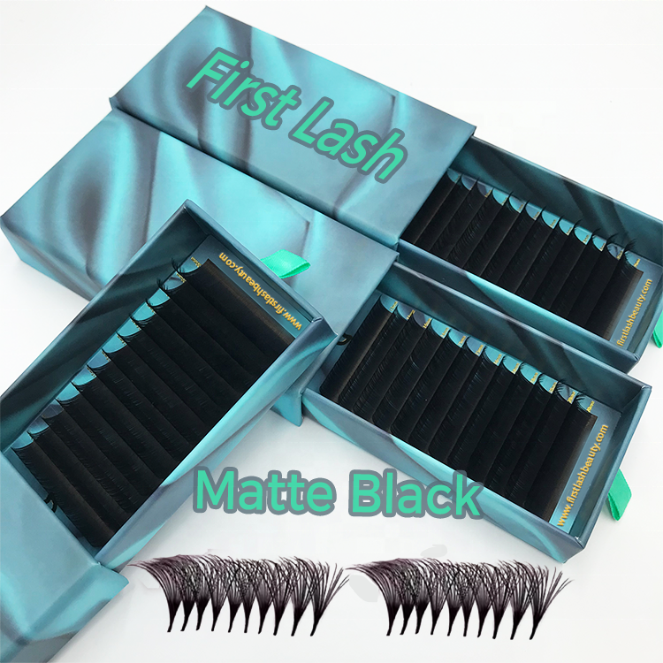 Extension ciglia volume russo 0,07 mm C/D, seta nero cashmere opaco, 100% handmade, 5–25 mm, personalizzabile (OEM/ODM)