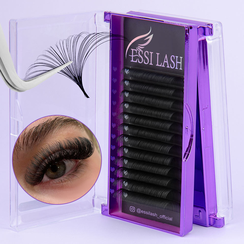 Essi Extension ciglia volume russo individuale C/D curl 0,07 mm 6–30 mm, velluto opaco scuro, cashmere silk/fibra sintetica/faux mink, 12 linee/vassoio (8–20 su richiesta)