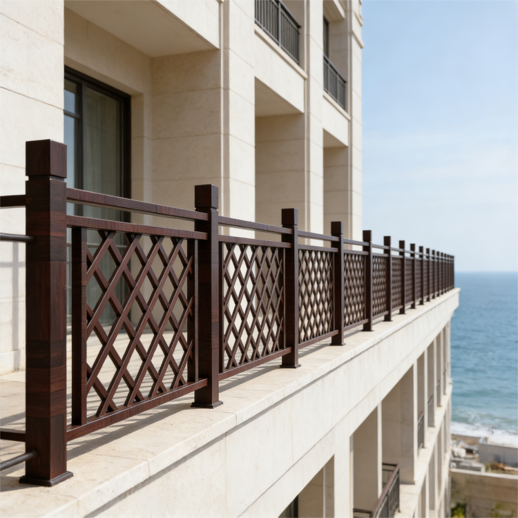 Balaustra in Acciaio Antiruggine con Rivestimento Effetto Legno Griglia a Diamante per Ringhiere di Scale Esterne e Balconi Bassa Manutenzione