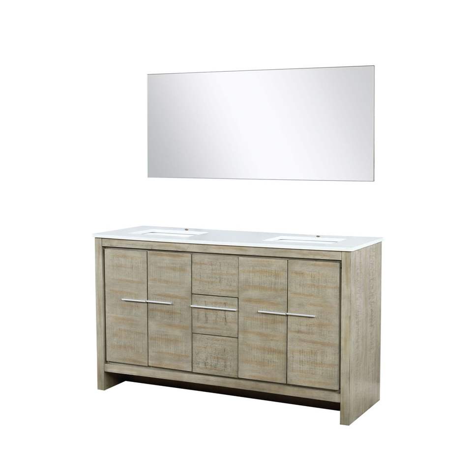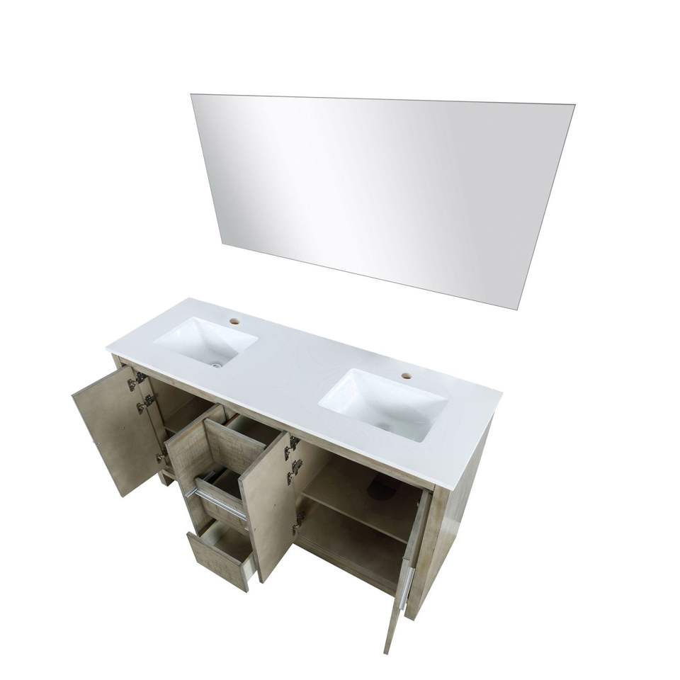 Vanità da bagno doppio In Acacia rustica con 60 In. W X 20 In. D piano In marmo coltivato e 55 In. Specchio da bagno da 60 pollici