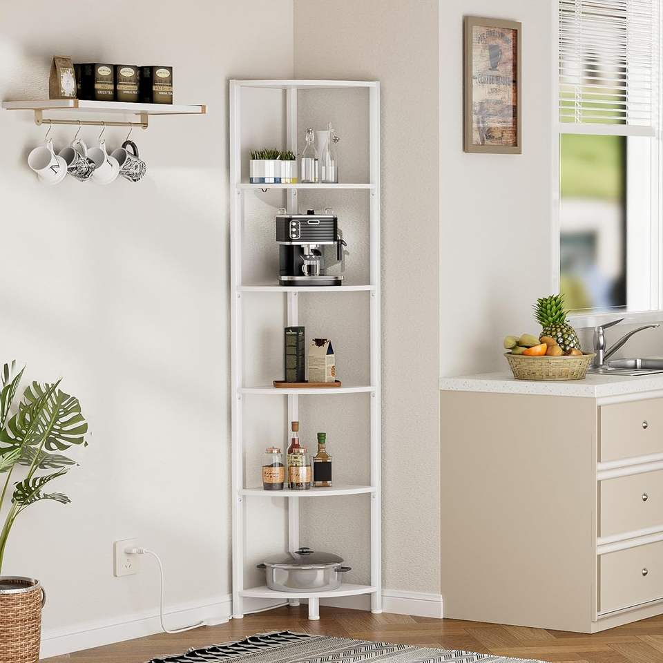 Scaffale angolare antico rustico con luce a LED organizzatore in piedi bianco stretto scaffale per scaffali angolo parete