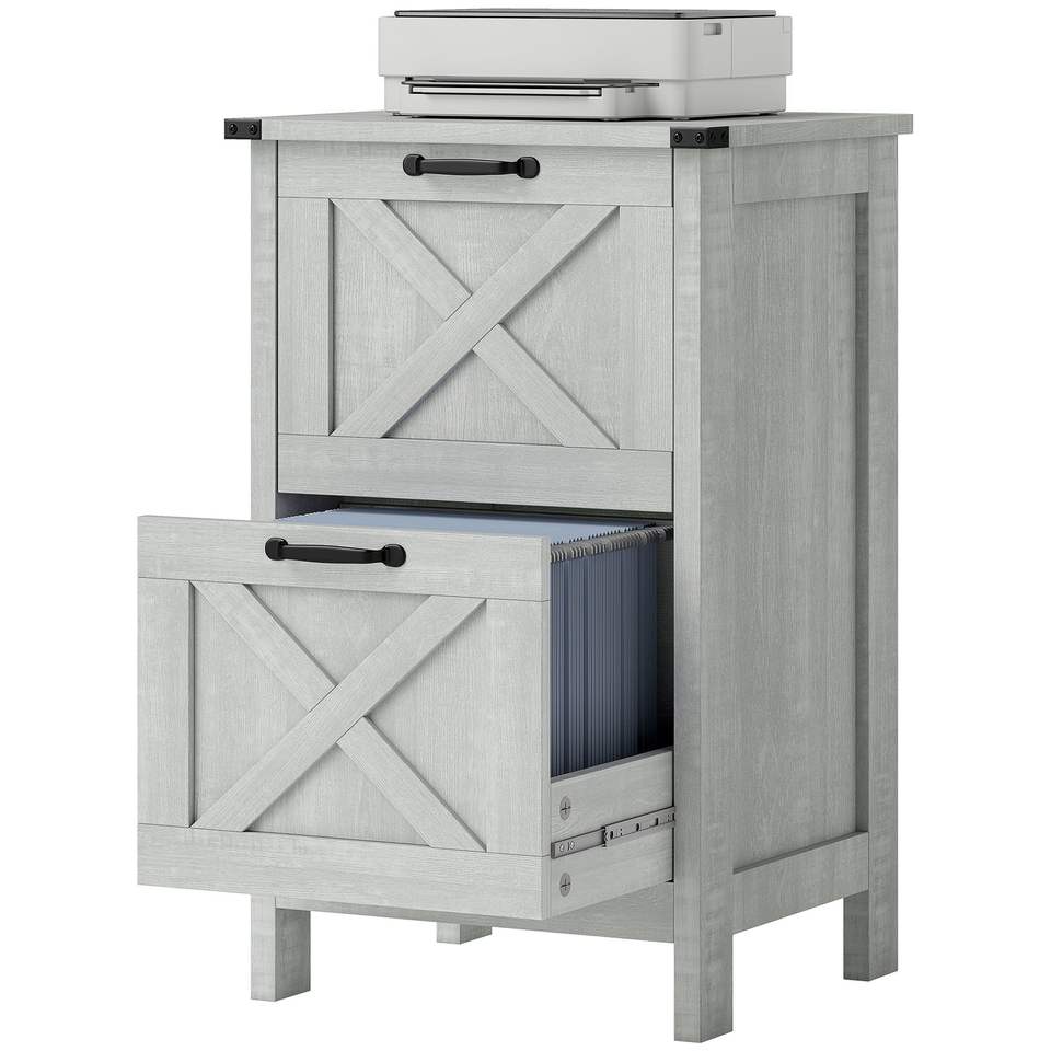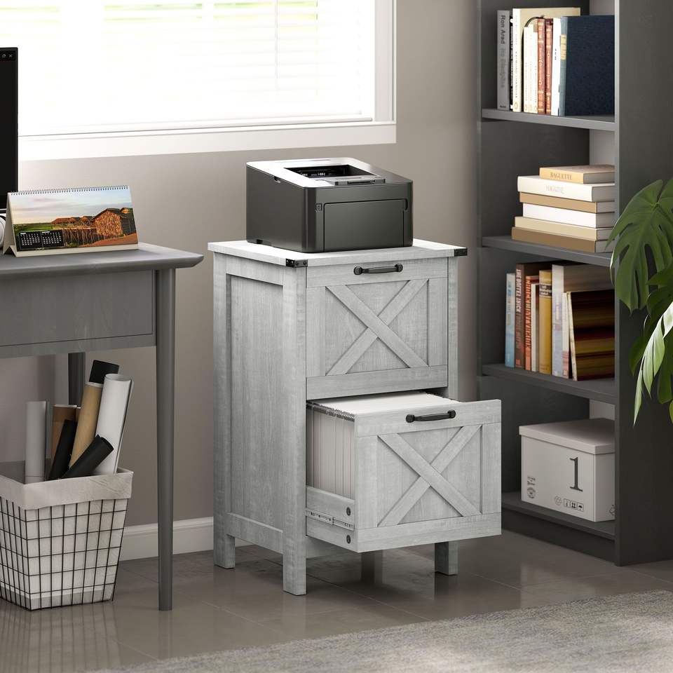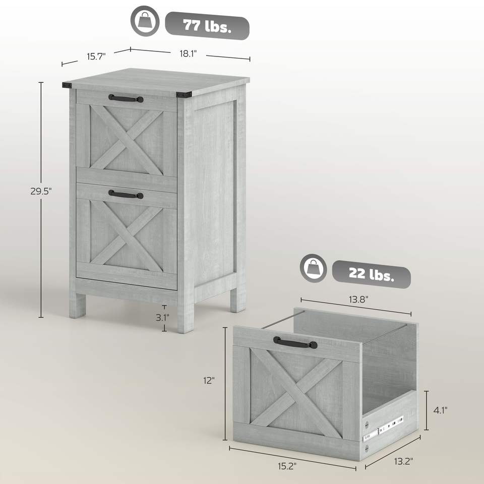 Armadietto verticale rustico in stile farmhouse a 2 cassetti, grigio chiaro anticato, formato Letter, per archiviazione ufficio, ispirato ad A4