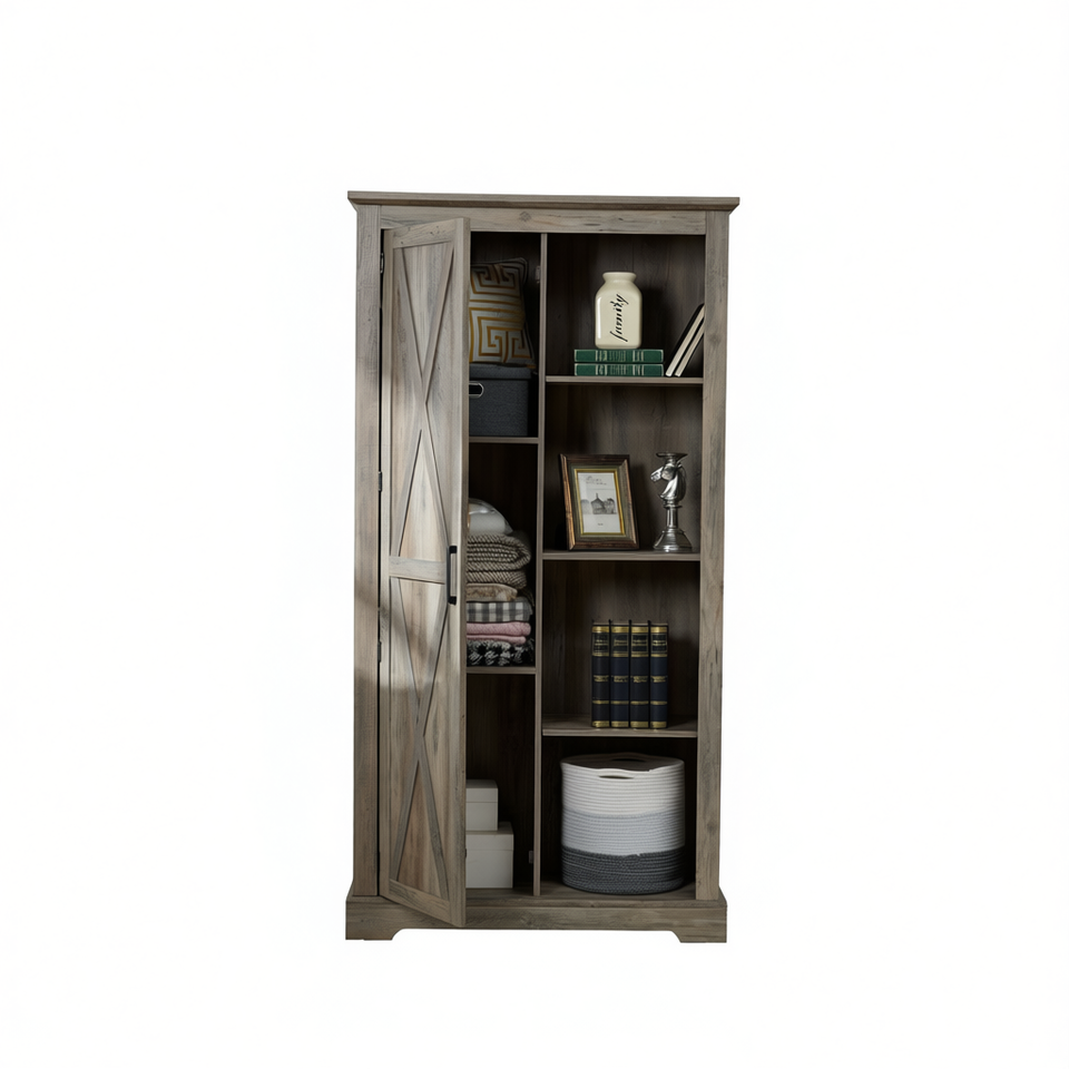 Armadio Rustico Stile Fattoria con Porta Scorrevole, Dispensa da Cucina con 5 Ripiani, Finitura Grigio Anticato