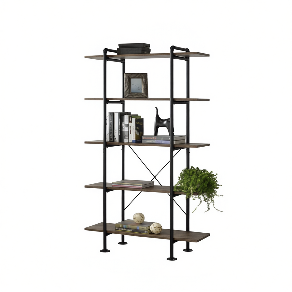 Libreria Rustica in Quercia con 5 Ripiani, Resistente e Autoportante, Arredamento Moderno per Soggiorno e Ufficio