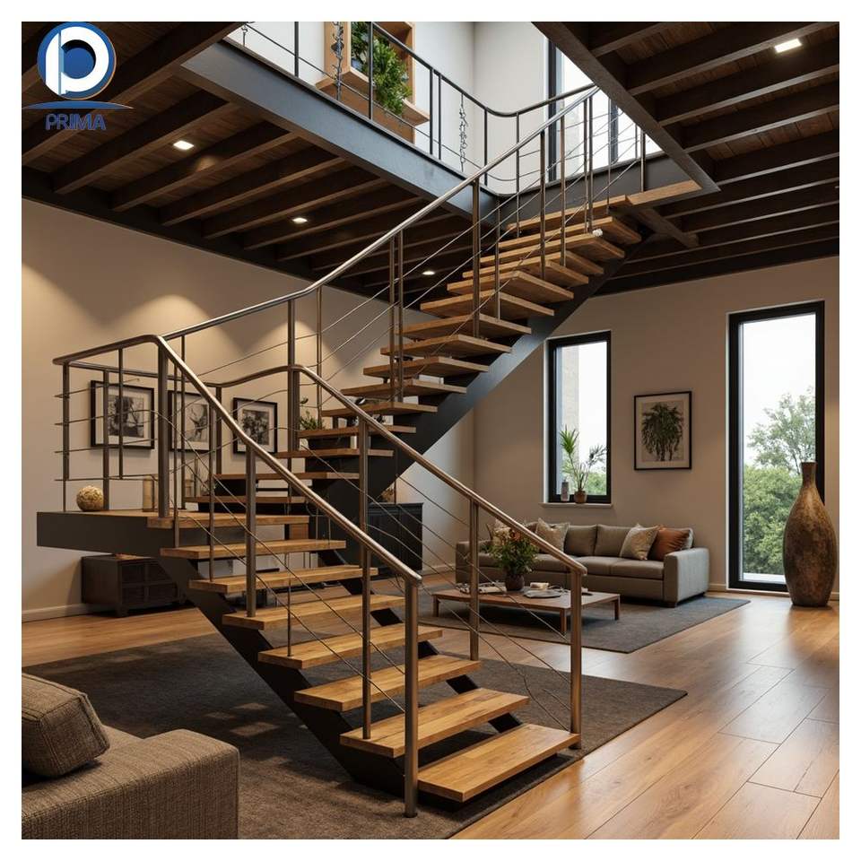 Scala di pino rustico ammortizzata scala rinforzata rampa di scale per gli interni della cabina di montagna