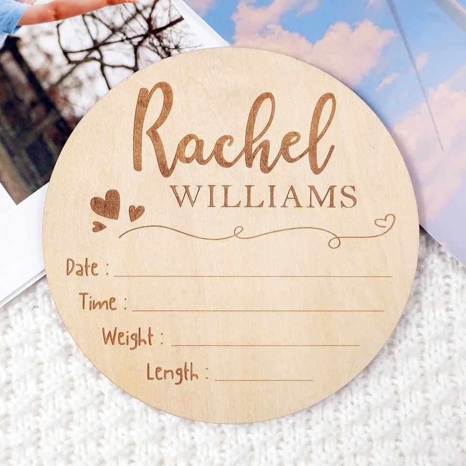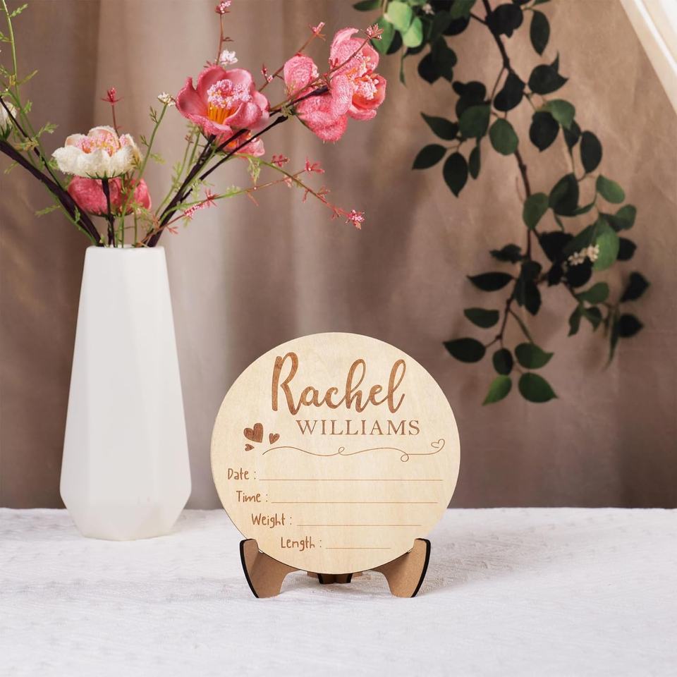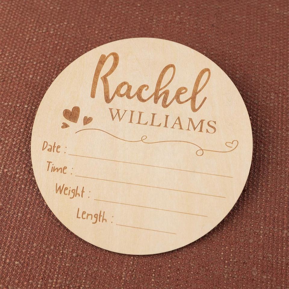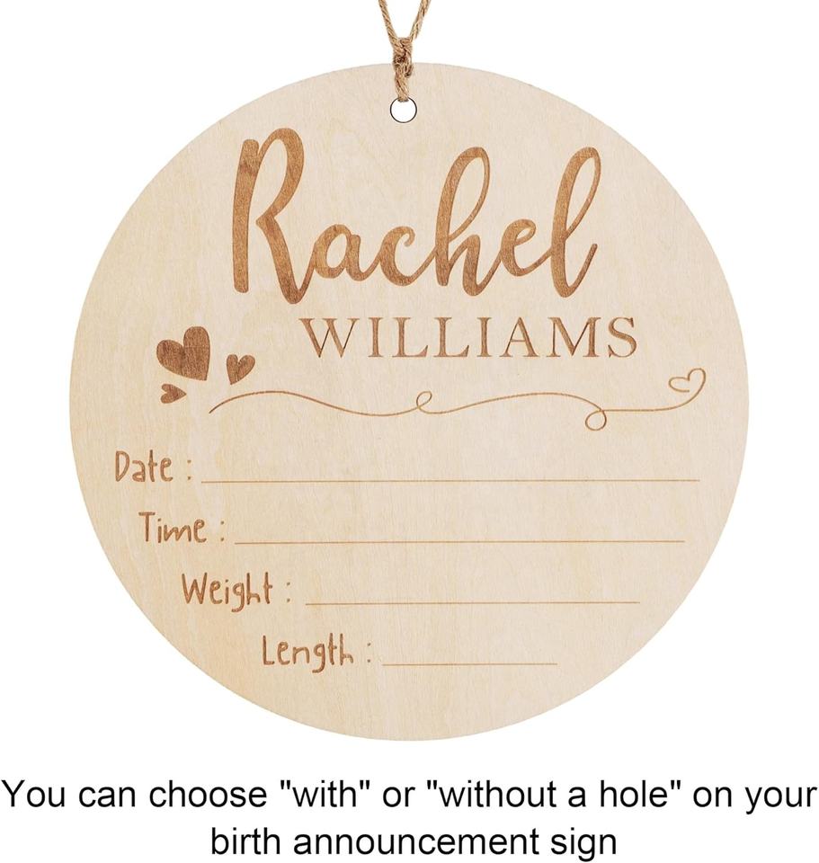 Segno di annuncio di nascita in stile rustico per ospedale personalizzato inciso al Laser in legno nome del bambino e segno del neonato