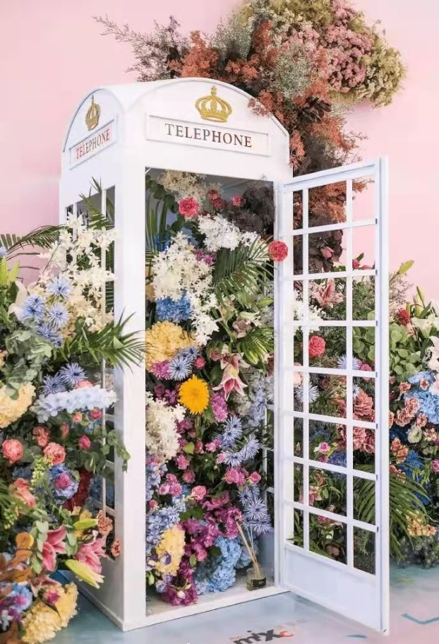 Cabina Telefonica Vintage Rustica per Decorazioni Matrimoniali - Accessori Fotografici in Stile Britannico per Ricevimenti di Nozze all'Aperto