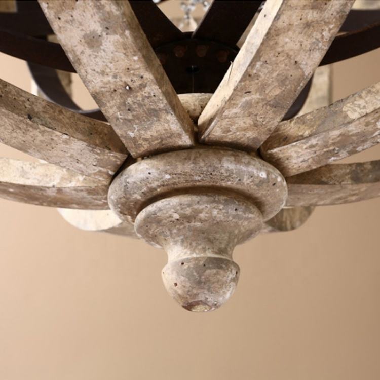 Rustic Weathered Wood Globe Antique Chandelier Metal Crystal Ceiling Light, Medium